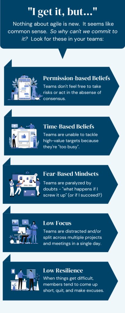 In all cases of Agile failure, wrong attitude and action is the culprit. Until you change these, nothing changes. As we see increasing failures to innovate through crisis – volatility and uncertainty, we have to spot-check ourselves against this list.